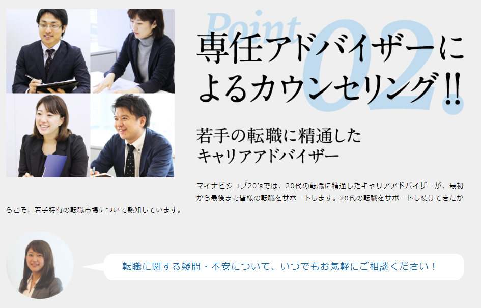 マイナビジョブ20'sは24歳~29歳限定の転職エージェントで、若手人材向けの好条件求人が多く揃っています!年収を上げたいのか、自分の時間をしっかり作りたいのか、どんな希望でも叶う求人を絶対に紹介してもらえるので、現在の職場に少しでも不満がある方には絶対におすすめです!
