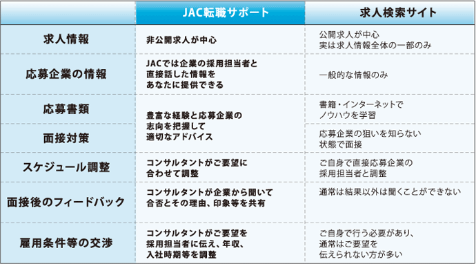 さらにあなたの業界での市場価値も正確に把握できるので、JACリクルートメントでは将来を考えたキャリアプランの適切なアドバイスを提供しています。 転職のプロがあなたの強みや経験を発見してくれるので、面接時にも自信を持って臨めます。転職成功に導くためのノウハウが豊富なので、一人で転職をするよりも時間や労力が大幅に節約できるのも大きなメリットです。